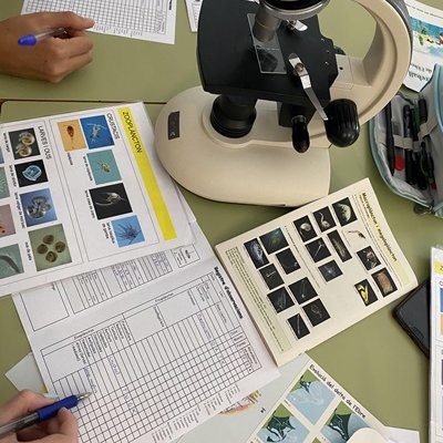 Tan aviat com hem pogut ens hem dirigit al Camp d’Aprenentatge, on hem dinat i descansat unes hores, gaudint de les instal·lacions d’esbarjo, com el tenis taula o el voleibol. Més endavant, vora les tres de la tarda, ens hem dirigit un altre cop a les aules. Allà hem xalat inspeccionant les mostres de plàncton recollides al matí. Fins i tot hem pogut identificar alguns dels microorganismes, els quals hem anat recopilant en una taula al nostre dossier de treball.