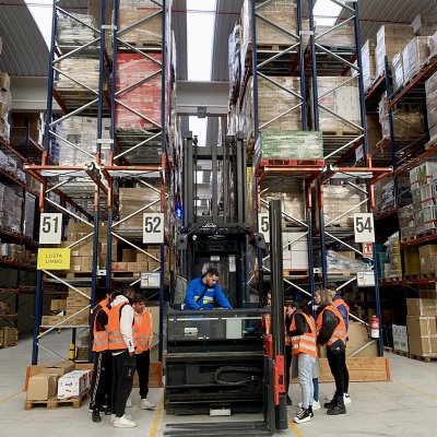 Van poder veure un gran magatzem amb molts dels processos que s'han explicat a classe en diferents mòduls professionals. Els van explicar el funcionament de la càrrega i la descàrrega, l'organització del magatzem, la preparació de comandes; també van veure la maquinària que es fa servir per al transport intern de les mercaderies amb alguna petita demostració i, per últim, van visitar l'enorme show-room que té l'empresa dins les seves instal·lacions.