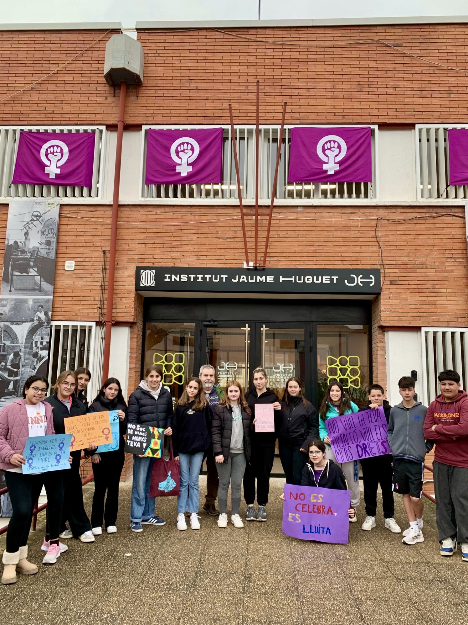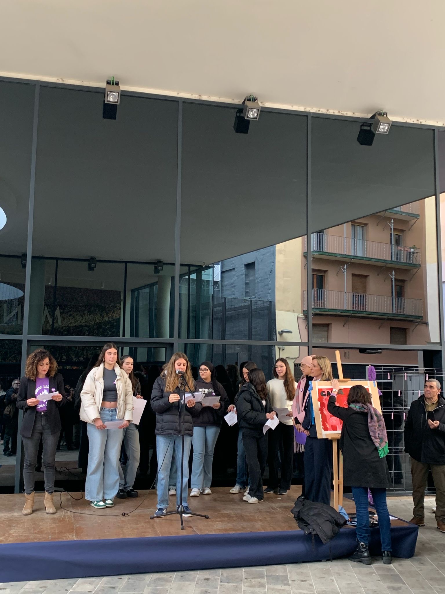 Avui la comissió lila de l’Institut ha assistit a l'acte commemoratiu del 8M, Dia Internacional de la Dona Treballadora, que ha organitzat l'Ajuntament de Valls davant del Museu Casteller.