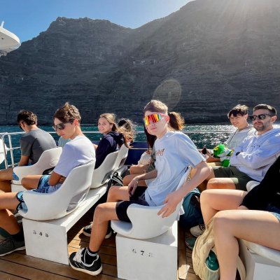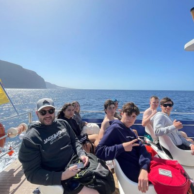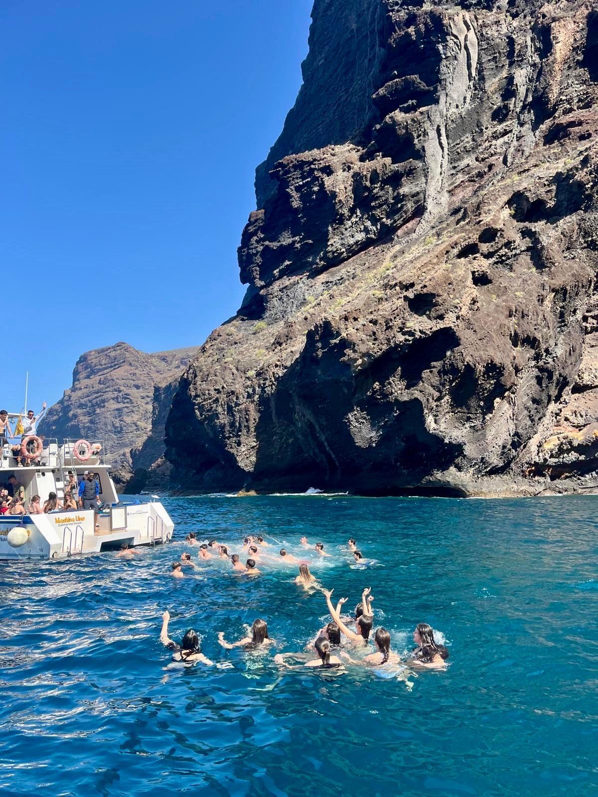 1 abril: El segon dia del viatge va ser molt intens. Al matí van fer un passeig en barca pels penya-segats de Los Gigantes, al sud de l’illa, i es van poder banyar a l’Atlàntic. Encabat, després de dinar, van recórrer el passeig marítim de Puerto de la Cruz i es van banyar a l’emblemàtica platja de San Telmo.