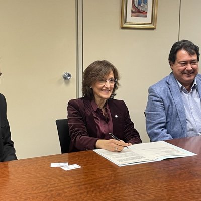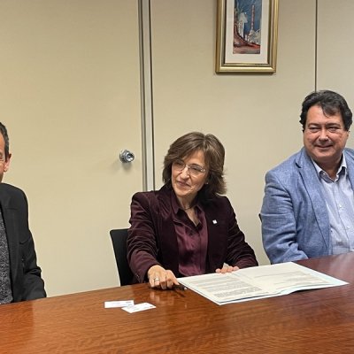 Van formalitzar la signatura: Francesc León, president del Gremi d’Àrids de Tarragona; Mercè Chacón, directora general d’FP del Departament d’Educació, i Josep Rodríguez, president de la pedrera La Ponderosa.