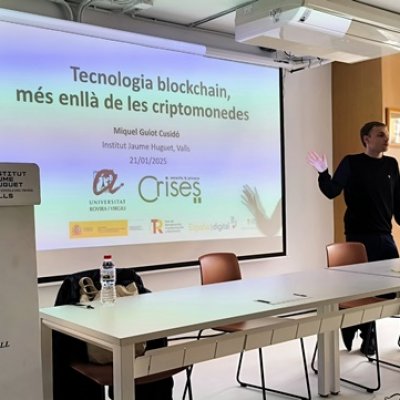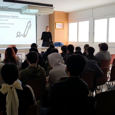També per a tots els cicles d’informàtica es va fer una altra xerrada. Miquel Guiot, doctorant de seguretat d’ETSE URV, els va parlar de “Blockchain: més enllà de les criptomonedes” i durant la seva intervenció els explicà en profunditat temes com ara P2P, criptografia, funcions hash, etc.