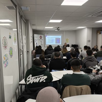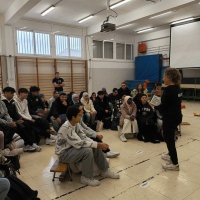 Les activitats van continuar a l’Institut mateix amb la xerrada "Intel·ligència artificial (IA) a l'abast de tothom" a càrrec de Xavier León, professor del centre, que estava destinada als alumnes dels CFGS d’informàtica. El Xavier els va explicar conceptes teòrics sobre la IA i eines d’IA gratuïtes de generació de codi de programació, eines d'edició de vídeo i generació d'imatges, etc. Els alumnes van riure molt amb les imatges generades per la IA i van posar a prova el ChatGPT per saber si era certa la resposta donada a un plantejament.