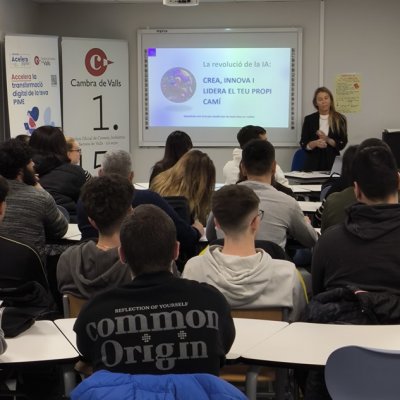 Una altra de les activitats, amb el suport de la Cambra de Comerç de Valls, adreçada als alumnes del CFGS d’Administració i Finances, va ser la xerrada “La revolució de la IA: crea, innova i lidera el teu propi camí" a càrrec de Susana Martín Escriche. Martín és una psicòloga amb més de 20 anys d'experiència, especialitzada en lideratge transformacional, intel·ligència artificial i dinamització de comunitats. Va explicar com la intel·ligència artificial està transformant la manera de treballar i crear; va donar eines per generar idees innovadores i consells per destacar en aquesta nova era digital i, finalment, aplicacions pràctiques per a un lideratge més efectiu. L’activitat comptà amb el suport de @redpuntoes #kitdigital @mintradigital #camaracomercioespaña @planderecuperacion i el finançament de la UE #nextgenerationeu @acelerapyme #trasnformaciondigital #planderecuperacion #acelerapyme.